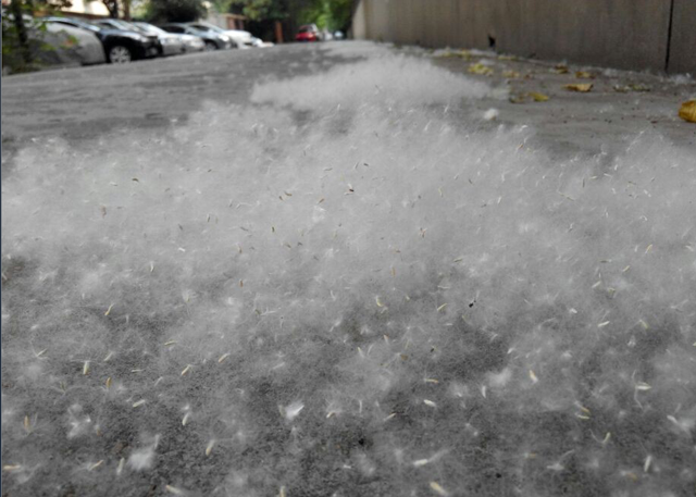 近日,宿遷城區(qū)街頭楊絮漫天,飛舞的楊絮仿若“春雪”,隨風四處飄散,讓人不堪其擾。