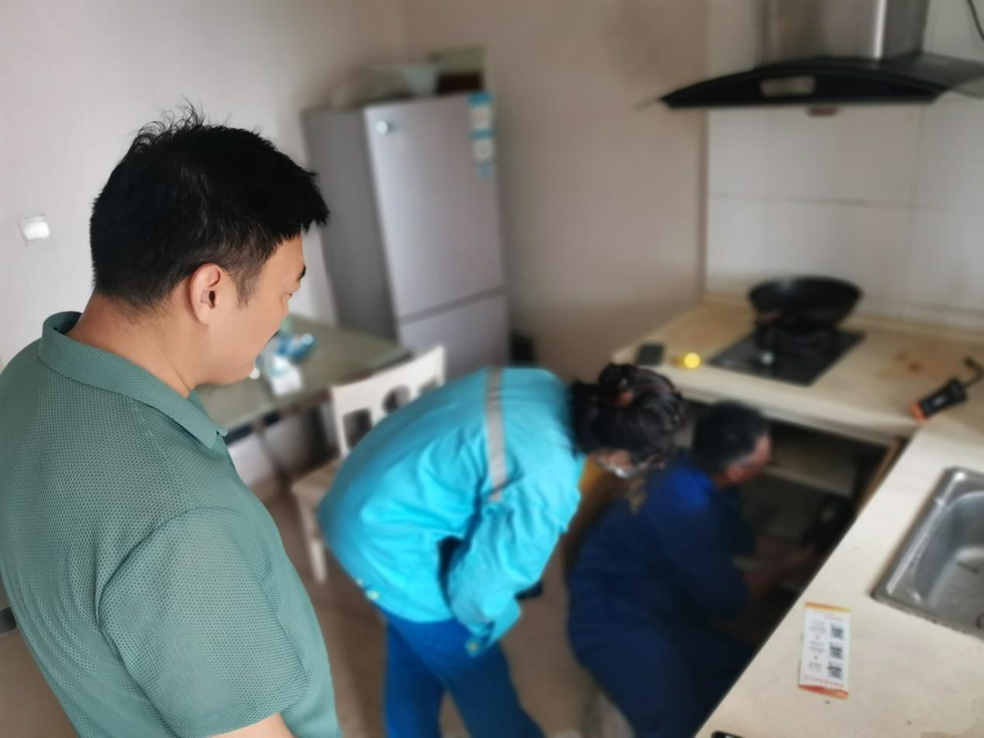 公司邀請燃?xì)夤緦@區(qū)公舍、蘇宿工業(yè)坊等用氣場所逐一入戶檢查,現(xiàn)場查看燃?xì)獍惭b、使用、維護(hù)保養(yǎng)等是否符合安全技術(shù)標(biāo)準(zhǔn),軟管是否存在老化、泄露,是否安裝可燃?xì)怏w報警裝置等,并為園區(qū)公舍18號樓更換智能燃?xì)獗?。期間,檢查人員還向用戶宣講了燃?xì)獍踩R。