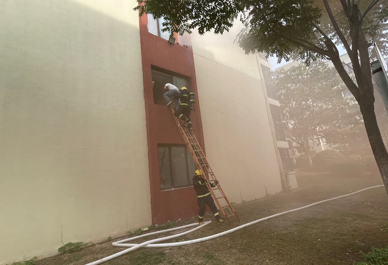 本次演練模擬的是電動自行車違規(guī)充電期間突發(fā)自燃的情景,園區(qū)公舍值班人員收到消防報警后,立即通知當(dāng)班安保隊長前往現(xiàn)場,核實后迅速啟動火災(zāi)應(yīng)急預(yù)案。演練過程中,園區(qū)公舍微型消防站義務(wù)消防員初期控制火勢發(fā)展,增援力量園區(qū)消防應(yīng)急救援大隊及時到場,各參演小組人員反應(yīng)迅速、處置規(guī)范、配合默契,最終成功將“火”撲滅,受困人員安全疏散至安全區(qū)域,達到了“快出警、能救援、善處置、保安全”的預(yù)定演練目標。
