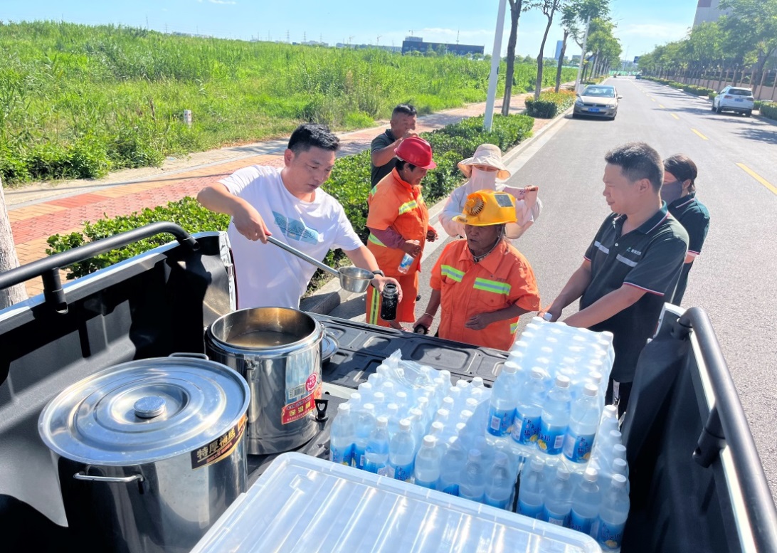 發(fā)放防暑飲品,為工人送清涼。組織各外包單位準備綠豆湯、鹽汽水等防暑降溫飲品,并配送到工人手上,讓每個工人都能及時喝到消暑解渴飲品,感受清涼與關愛。