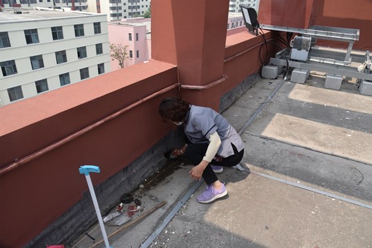 由于雨天泥沙、生活垃圾等雜物極易隨雨水流入雨水篦、排水口導(dǎo)致排水管道堵塞。此次疏通過程中,通過對所有天臺排水口、地面雨水篦逐個清淤,積極消除汛期隱患,確保雨季排水暢通。