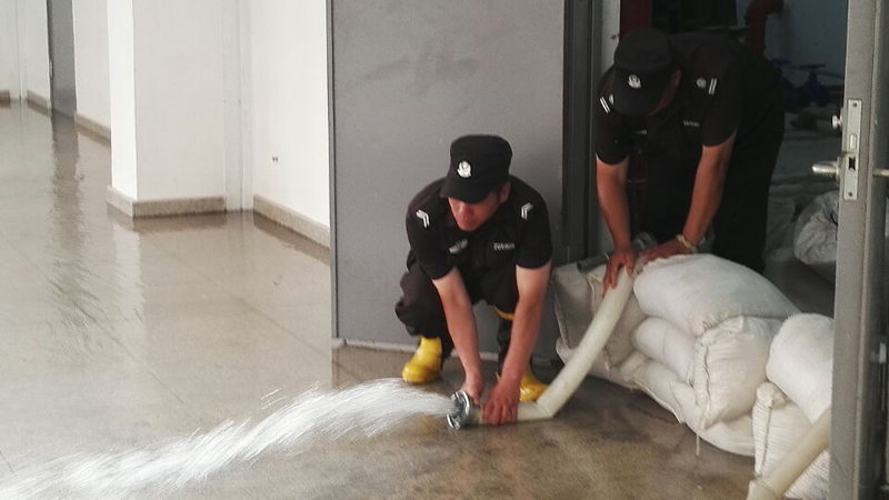 本次演練主要結(jié)合項目實際情況,在突發(fā)暴雨災(zāi)害發(fā)生時,重點(diǎn)針對校園設(shè)備機(jī)房等重點(diǎn)區(qū)域,設(shè)置警戒,快速疏散現(xiàn)場人員及車輛,作利用防汛工具緊急排險,有效排除現(xiàn)場積水。