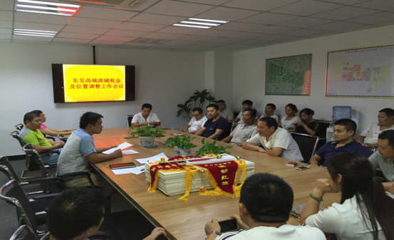 9月9日下午,公司組織召開東吳尚城一樓美食城商鋪?zhàn)饨鸺拔恢谜{(diào)整工作會(huì)議,東吳尚城一樓美食城所有商戶負(fù)責(zé)人參加。
